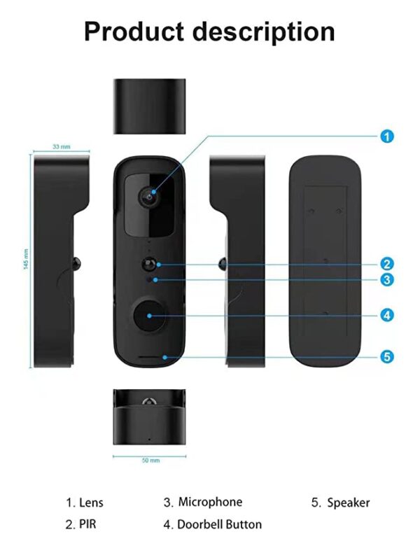 - [ SMART PIR MOTION DETECTION & ALERTS ] — The video door bell for home contains built-in PIR motion sensor, with this, door bell wireless for home can detect the slightest movement in front of the door. You’ll get a push notification on your phone if someone pass wireless door bell for home. With door bell with camera for home you can check suspicious activity at any time even if working at the office, shopping at the mall, or traveling far away on vacation. Video door bell can be trust.